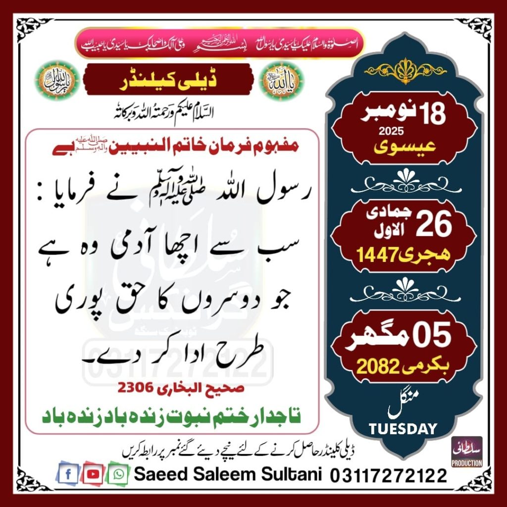 بسم الله الرحمن الرحيم السلام علیکم ورحـــــــمةالله وبركآته٫ درگزر کرنا درویشی اور ٹھیک کرنا امامت ھے۔یا الله پاک اپنی محبت کو میرے لئے ہر چیز کی محبت سے بڑھا دیجیے، مجھ میں آپنا خوف باقی ہر خوف سے زیادہ کر دیجیے، دنیا کی ہر طلب پر اپنی ملاقات کا شوق ہرطلب پر غالب کر دیجیے۔